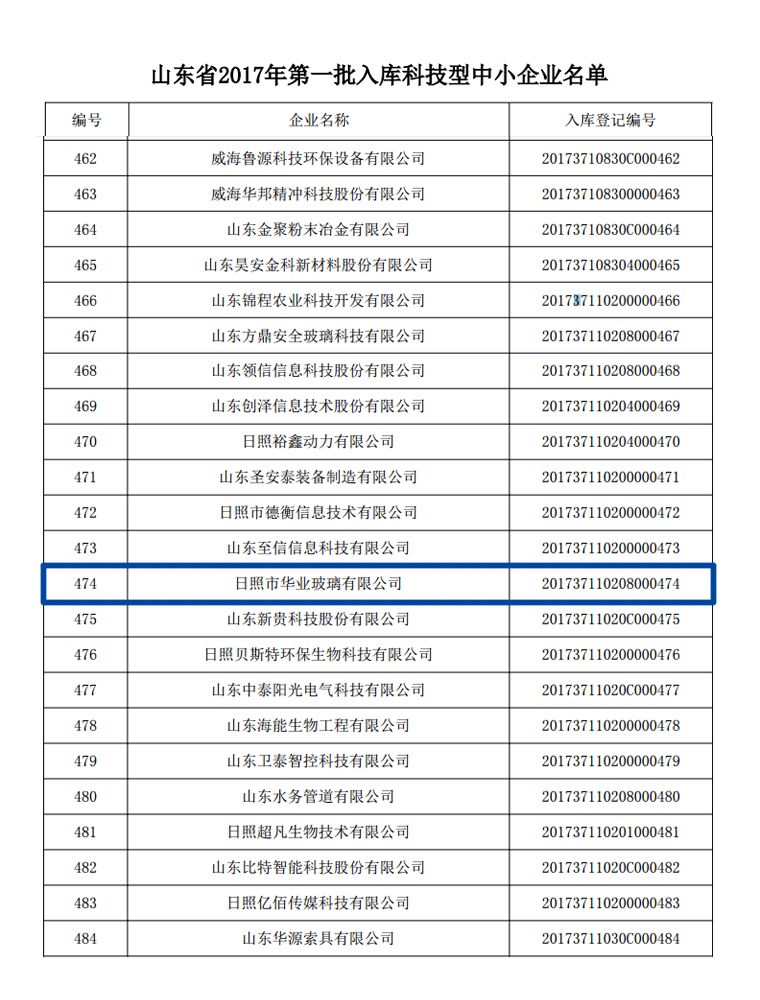 2018年1月24日,山東省科技廳發(fā)布公告,公布山東省2017年度第一批入庫科技型中小企業(yè)名單,我公司成功入選。