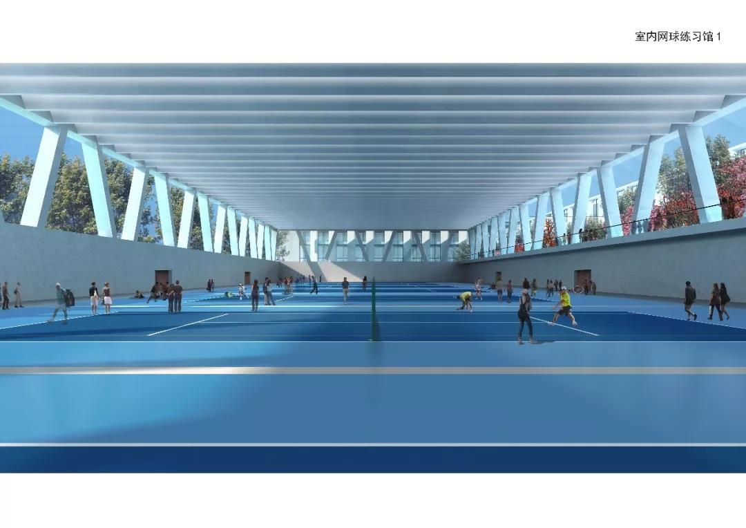 主要建設(shè)中心賽場(chǎng),室內(nèi)網(wǎng)球練習(xí)館(含常規(guī)場(chǎng)地、網(wǎng)球中心配套用房、VIP室內(nèi)場(chǎng)地及其配套服務(wù)用房、學(xué)員公寓)單跨跨度約42米,室內(nèi)網(wǎng)球練習(xí)館(紅土場(chǎng)地),籃球館,教員公寓,室外網(wǎng)球比賽場(chǎng),室外網(wǎng)球練習(xí)場(chǎng)及地下停車(chē)場(chǎng)。