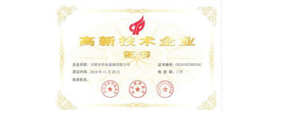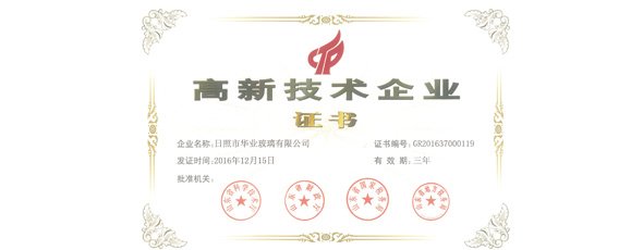 華業(yè)玻璃被認(rèn)定為“高新技術(shù)企業(yè)”。