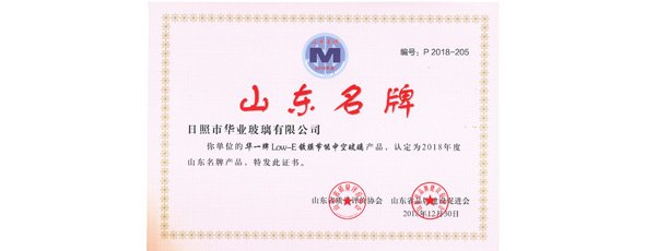 “華一”牌Low-E鍍膜節(jié)能中空玻璃產(chǎn)品,被認(rèn)定為2018年度山東名牌產(chǎn)品。